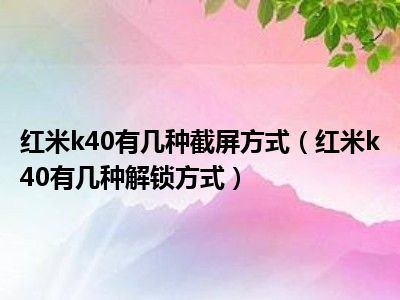 导读 1、红米k40有几种解锁方式?2、红米k40有三种解锁方式,分别是人脸解锁、指纹解锁和数字(图案)密码解锁。3、除了传统的人脸解锁和数字(图案