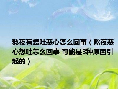 目前大家应该是对熬夜恶心想吐怎么回事 可能是3种原因引起的比较感兴趣的,所以今天小编CC就来为大家整理了一些关于熬夜恶心想吐怎么回事 可能是3种原因引起的方面的相关知识来分享给大家,希望大家会喜欢哦。