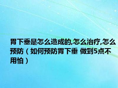 目前大家应该是对如何预防胃下垂 做到5点不用怕比较感兴趣的,所以今天小编CC就来为大家整理了一些关于如何预防胃下垂 做到5点不用怕方面的相关知识来分享给大家,希望大家会喜欢哦。