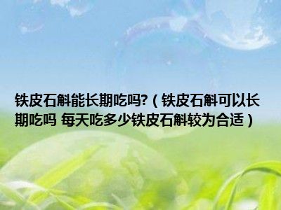 目前大家应该是对铁皮石斛可以长期吃吗 每天吃多少铁皮石斛较为合适比较感兴趣的,所以今天小编CC就来为大家整理了一些关于铁皮石斛可以长期吃吗 每天吃多少铁皮石斛较为合适方面的相关知识来分享给大家,希望大家会喜欢哦。