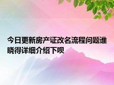 导读 目前大家应该是对房产证改名流程问题谁晓得详细介绍下呗比较感兴趣的,所以今天好房网小编CC就来为大家整理了一些关于房产证改名流程问题谁