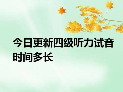 四级听力试音时长二十分钟。8:40——9:00试音时间。大学英语四级考试正式开始时间为上午9点,听力试音时间是8点50分,所以建议参加考试的考生在8点40分前进考场。考生进入四级考场时要携带准考证和身份证,二者缺一不可。
