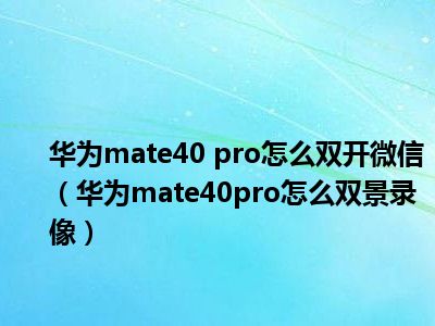 1、 华为mate40pro怎么双景录像?