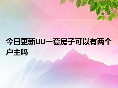 导读 目前大家应该是对一套房子可以有两个户主吗比较感兴趣的,所以今天好房网小编CC就来为大家整理了一些关于一套房子可以有两个户主吗