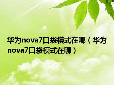 导读 1、华为nova7口袋模式在哪?2、华为nova7具有口袋模式功能,在接到来电时会逐渐提高铃声音量。口袋模式功能默认开启,无法手动关闭,所以没