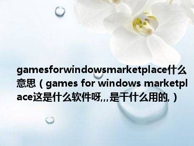 gamesforwindowsmarketplace什么意思(games for windows marketplace这是什么软件呀,,,是干什么用的,)