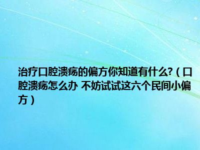 目前大家应该是对口腔溃疡怎么办 不妨试试这六个民间小偏方比较感兴趣的,所以今天小编CC就来为大家整理了一些关于口腔溃疡怎么办 不妨试试这六个民间小偏方方面的相关知识来分享给大家,希望大家会喜欢哦。