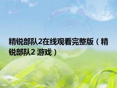 导读 目前是有很多朋友们对于精锐部队2 游戏这个信息比较感兴趣,那么小编也是收集了一些精锐部队2 游戏相关的信息来分享给大家,希望你会喜欢