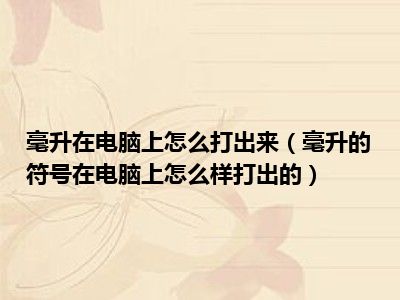 相信目前很多小伙伴对于毫升的符号在电脑上怎么样打出的都比较感兴趣,那么小编今天在网上也是收集了一些与毫升的符号在电脑上怎么样打出的相关的信息来分享给大家,希望能够帮助到大家哦。