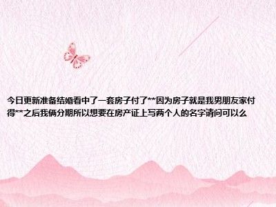 导读 目前大家应该是对准备结婚,看中了一套房子,付了**因为房子就是我男朋友家付得**,之后我俩分期,所以想要在房产证上写两个人的名字,请问