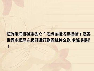 相信目前很多小伙伴对于魔兽世界永恒岛次级好运符刷青蛙肿么刷,求解,谢谢!都比较感兴趣,那么小编今天在网上也是收集了一些与魔兽世界永恒岛次级好运符刷青蛙肿么刷,求解,谢谢!相关的信息来分享给大家,希望能够帮助到大家哦。