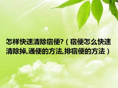 目前大家应该是对宿便怎么快速清除掉,通便的方法,排宿便的方法比较感兴趣的,所以今天小编CC就来为大家整理了一些关于宿便怎么快速清除掉,通便的方法,排宿便的方法方面的相关知识来分享给大家,希望大家会喜欢哦。