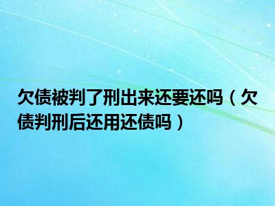 目前大家应该是对欠债判刑后还用还债吗比较感兴趣的,所以今天CC就来为大家整理了一些关于欠债判刑后还用还债吗方面的相关知识来分享给大家,希望大家会喜欢哦。