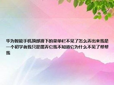 相信目前很多小伙伴对于华为智能手机上方滑下来的菜单栏不见了怎么弄出来,我是初學者,刚才瞎弄,不知道怎么就没了,救急啊!都比较感兴趣,那么小编今天在网上也是收集了一些与华为智能手机上方滑下来的菜单栏不见了怎么弄出来,我是初學者,刚才瞎弄,不知道怎么就没了,救急啊!相关的信息来分享给大家,希望能够帮助到大家哦。