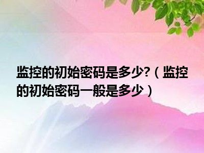 1、 监控的初始密码一般是多少