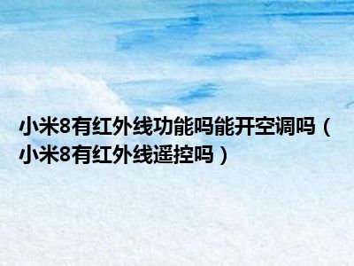 导读 1、小米8有红外线遥控吗2、小米8没有红外遥控功能,也就是说小米8不能用来遥控电视空调等家电。红外遥控是一种无线非接触式控制技术,具有