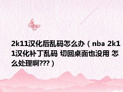 导读 相信目前很多小伙伴对于nba 2k11汉化补丁乱码 切回桌面也没用 怎么处理啊???都比较感兴趣,那么小编今天在网上也是收集了一些与nba 2k...