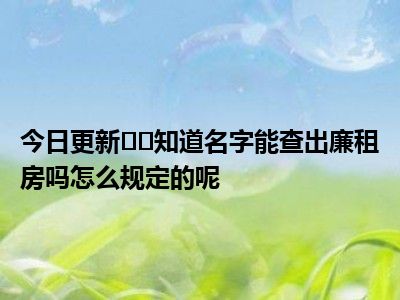 导读 目前大家应该是对知道名字能查出廉租房吗怎么规定的呢比较感兴趣的,所以今天好房网小编CC就来为大家整理了一些关于知道名字能查出