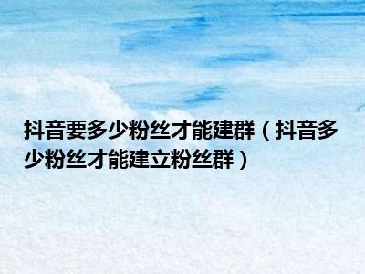 导读 1、抖音多少粉丝才能建立粉丝群?2、在Tik Tok建立粉丝群对粉丝数量没有要求。Tik Tok直播结束后,你可以在Tik Tok创作者服务中心