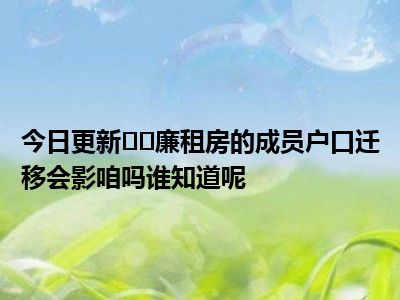 导读 目前大家应该是对廉租房的成员户口迁移会影咱吗谁知道呢比较感兴趣的,所以今天好房网小编CC就来为大家整理了一些关于廉租房的成员