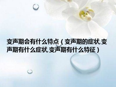目前大家应该是对变声期的症状,变声期有什么症状,变声期有什么特征比较感兴趣的,所以今天小编CC就来为大家整理了一些关于变声期的症状,变声期有什么症状,变声期有什么特征方面的相关知识来分享给大家,希望大家会喜欢哦。