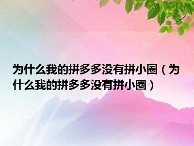 导读 1、为什么我的拼多多没有拼小圈2、拼多多没有拼小圆是因为这个功能关闭了。拼小圈只是给自己和朋友互相看看,别人不能。如果买的是私货,动
