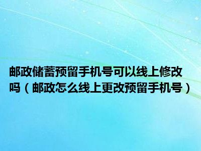 导读 1、邮政怎么线上更改预留手机号?2、不能在线更改预留的手机号码。需要持开户ID和一张开通10天的银行卡到网点更改预留手机号。如有疑问,请