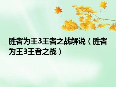 导读相信目前很多小伙伴对于胜者为王3王者之战都比较感兴趣,那么小搜今天在网上也是收集了一些与胜者为王3王者之战相关的信息来分享给大家,希...