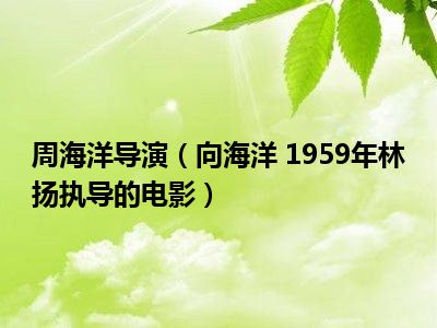 导读 目前是有很多朋友们对于向海洋 1959年林扬执导的电影这个信息比较感兴趣,那么小编也是收集了一些向海洋 1959年林扬执导的电影相关的信息