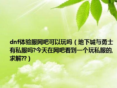 相信目前很多小伙伴对于地下城与勇士有私服吗?今天在网吧看到一个玩私服的,求解??都比较感兴趣,那么小编今天在网上也是收集了一些与地下城与勇士有私服吗?今天在网吧看到一个玩私服的,求解??相关的信息来分享给大家,希望能够帮助到大家哦。