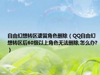 相信目前很多小伙伴对于QQ自由幻想转区后60级以上角色无法删除,怎么办?都比较感兴趣,那么小编今天在网上也是收集了一些与QQ自由幻想转区后60级以上角色无法删除,怎么办?相关的信息来分享给大家,希望能够帮助到大家哦。