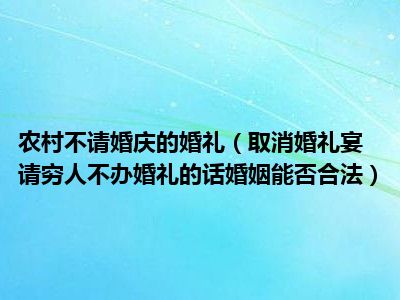目前大家应该是对取消婚礼宴请穷人,不办婚礼的话婚姻能否合法比较感兴趣的,所以今天CC就来为大家整理了一些关于取消婚礼宴请穷人,不办婚礼的话婚姻能否合法方面的相关知识来分享给大家,希望大家会喜欢哦。