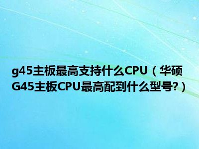 相信目前很多小伙伴对于华硕G45主板CPU最高配到什么型号?都比较感兴趣,那么小编今天在网上也是收集了一些与华硕G45主板CPU最高配到什么型号?相关的信息来分享给大家,希望能够帮助到大家哦。
