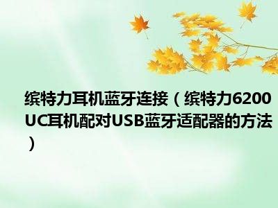 导读 1、将耳机与USB蓝牙适配器配对。2、1 将高保真蓝牙USB适配器插入笔记本电脑或计算机端口,等待计算机识别。3、2 将Plantronics 6200UC耳