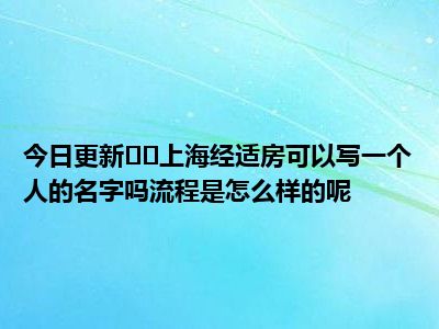 导读 目前大家应该是对上海经适房可以写一个人的名字吗流程是怎么样的呢比较感兴趣的,所以今天好房网小编CC就来为大家整理了一些关于上