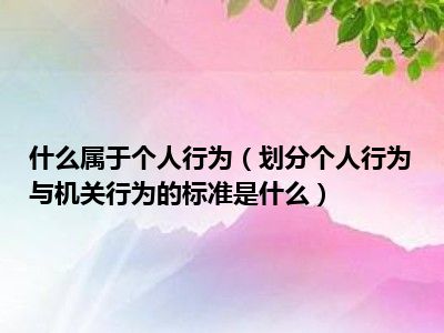 目前大家应该是对划分个人行为与机关行为的标准是什么比较感兴趣的,所以今天CC就来为大家整理了一些关于划分个人行为与机关行为的标准是什么方面的相关知识来分享给大家,希望大家会喜欢哦。