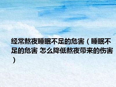 目前大家应该是对睡眠不足的危害 怎么降低熬夜带来的伤害比较感兴趣的,所以今天小编CC就来为大家整理了一些关于睡眠不足的危害 怎么降低熬夜带来的伤害方面的相关知识来分享给大家,希望大家会喜欢哦。