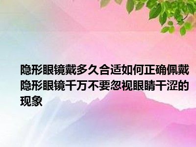 目前大家应该是对隐形眼镜戴多久为宜 隐形眼镜正确佩戴方法千万别忽略眼睛干涩现象比较感兴趣的,所以今天小编CC就来为大家整理了一些关于隐形眼镜戴多久为宜 隐形眼镜正确佩戴方法千万别忽略眼睛干涩现象方面的相关知识来分享给大家,希望大家会喜欢哦。