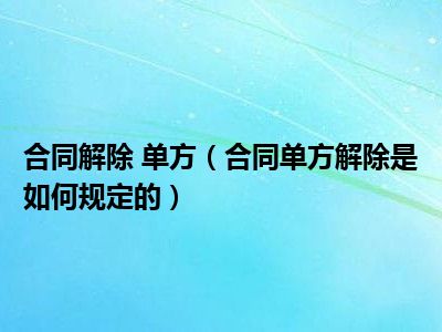 目前大家应该是对合同单方解除是如何规定的比较感兴趣的,所以今天CC就来为大家整理了一些关于合同单方解除是如何规定的方面的相关知识来分享给大家,希望大家会喜欢哦。