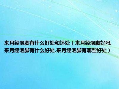 目前大家应该是对来月经泡脚好吗,来月经泡脚有什么好处,来月经泡脚有哪些好处比较感兴趣的,所以今天小编CC就来为大家整理了一些关于来月经泡脚好吗,来月经泡脚有什么好处,来月经泡脚有哪些好处方面的相关知识来分享给大家,希望大家会喜欢哦。