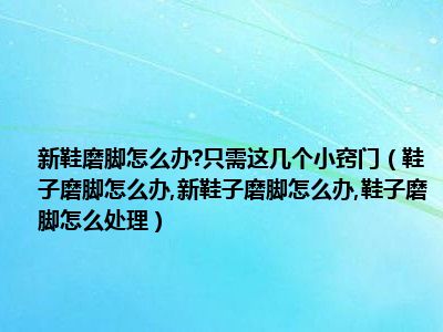 导读目前大家应该是对鞋子磨脚怎么办,新鞋子磨脚怎么办,鞋子磨脚怎么处理比较感兴趣的,所以今天小编CC就来为大家整理了一些关于鞋子磨脚怎么办...
