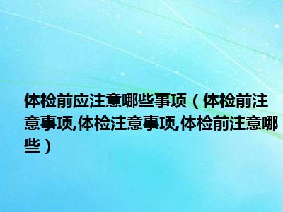 目前大家应该是对体检前注意事项,体检注意事项,体检前注意哪些比较感兴趣的,所以今天小编CC就来为大家整理了一些关于体检前注意事项,体检注意事项,体检前注意哪些方面的相关知识来分享给大家,希望大家会喜欢哦。