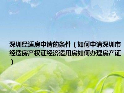 导读 目前大家应该是对如何申请深圳市经适房产权证经济适用房如何办理房产证比较感兴趣的,所以今天好房网小编CC就来为大家整理了一些关于如何申