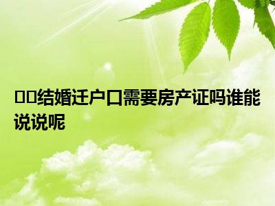 您好,夫妻投靠迁移不用房产证,需要结婚证,但是结婚以后办理夫妻户籍投靠落户,需要房产证。无房产证无法办理。具体要看你是哪个区域的,可以去房管局咨询一下。首先到男方户口所在地,如街道、村开个落户证明,理由婚姻迁移。然后拿着这个材料,去女方的户口所在地,开一个户口迁出。拿着女的户口迁出,到男方家的户籍派出所落户口。一,结婚迁移户口(夫妻户口同一县市)1, 到女方户口所在地派出所开”户籍证明”,并将婚姻状况改为“已婚”2, 持双方户口簿,男女身份证,结婚证,女方户籍证明,男方村(居)委会证明,到男方派出所填写入户申请表,迁出迁入都在一个户籍窗口办理, (有些地区需要提供计生办的”婚育证明”)3,女方落户后,需要重新办理身份证二, 结婚迁移户口(夫妻户口同省不同县)1, 到女方户口所在地派出所开“户籍证明”,并将婚姻状况改为已婚”2, 持双方户口簿,男女身份证,结婚证,女方户籍证明,男方村(居)委会证明,到男方派出所填写入户申请表, 报县公安局审批, (有些地区需要提供计生办的”婚育证明”)3, 审批后,可以网上迁移,也可以拿“户口准迁证明“到女方派出所把户口迁回来4, 女方落户后,需要重新办理身份证三, 结婚迁移户口(夫妻户口不同省)1, 到女方户口所在地派出所开“户籍证明”,并将婚姻状况改为“已婚”2, 持男方户口簿,男女身份证,结婚证,女方户籍证明,男方村(居)委会证明,到男方派出所填写入户申请表, 报县公安局审批, (有些地区需要提供计生办的”婚育证明”)3, 审批后,拿“户口准迁证明”到女方户籍派出所开“户口迁移证”4, 持男方户口簿, 女方户口迁移证,到男方户口所在地派出所办理落户.5 女方落户后,需要重新办理身份证