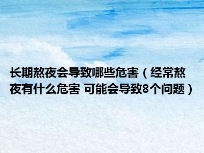 目前大家应该是对经常熬夜有什么危害 可能会导致8个问题比较感兴趣的,所以今天小编CC就来为大家整理了一些关于经常熬夜有什么危害 可能会导致8个问题方面的相关知识来分享给大家,希望大家会喜欢哦。