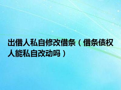 目前大家应该是对借条债权人能私自改动吗比较感兴趣的,所以今天CC就来为大家整理了一些关于借条债权人能私自改动吗方面的相关知识来分享给大家,希望大家会喜欢哦。