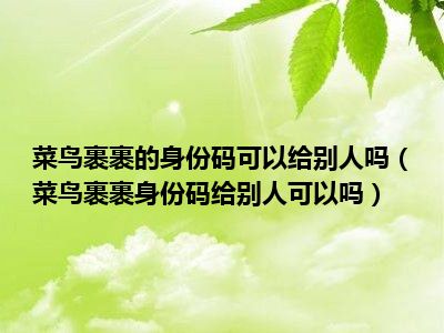 导读 1、菜鸟裹裹身份码给别人可以吗2、菜鸟把自己的ID码包给别人没问题。对方打开菜鸟包裹app,就可以看到你的快递信息,然后对方就可以用自己