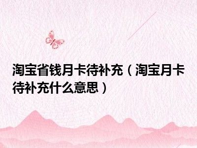 导读 1、淘宝月卡待补充什么意思2、淘宝月卡需要补卡,也就是说淘宝省钱卡的红包已经领取了很多次,用户需要第二天领取。3、淘宝是亚太地区的大