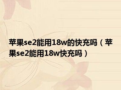 导读 1、苹果se2能用18w快充吗?2、苹果se2手机18w即可快充,支持10W 12W 18W功率充电。当使用18瓦快速充电电源适配器充电时,您可以在30分钟内