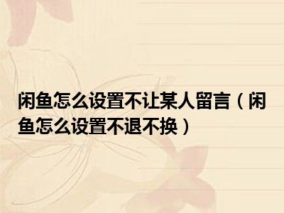 导读 1、闲鱼怎么设置不退不换2、没有让你直接为闲鱼设置止逆功能的选项。您只能在产品详细信息页面的描述中进行评论。产品一经售出,恕不退换。